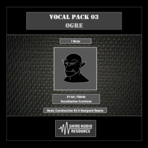The Vocal Pack 03: Ogre contains over just over 15 minutes (141 files) of high quality ogre styled vocalisation exertions by 1 human actor.