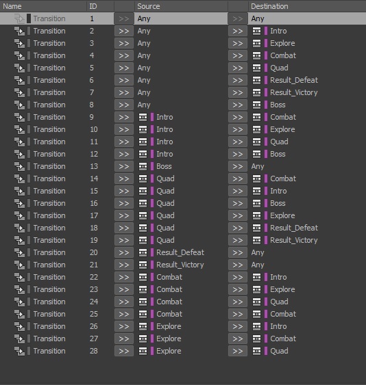 This is where we will assign what tracks can go to which other music track, when the game sends a call to Wwise.